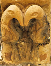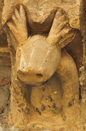 más llaman la atención de esta iglesia es la excelente serie de veintinueve canecillos esculturados en