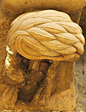 coronadas de flores esculpidas en la piedra que ejerce de capitel,