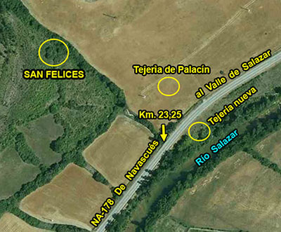 ermita de San Felices. Ortofotos SITNA 1927 y 2022