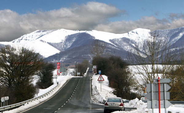 por la NA-135, Pamplona-Francia por Luzaide/Valcarlos. Por ella