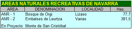 · Áreas Naturales Recreativas.