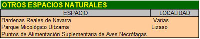 Los Puntos de Alimentación Suplementaria de Aves Necrófagas (Muladares) establecidos en la Zona Pirineo están en: Napal, Lumbier, Garralda, Jaurrieta y Zandueta. Asimismo, están previstos muladares en zonas como Izagaondoa, Aoiz, Ochagavía y Navascués.