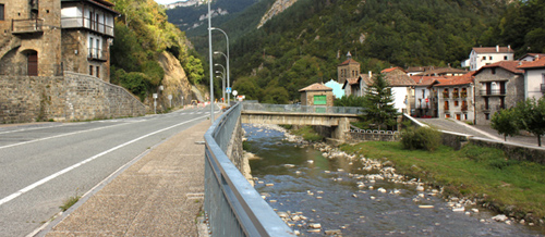 El río rati, eje vertebrador de la Zona Pirineo, desde el puente de Aós. |