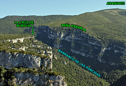 La segunda curva, con saliente hacia al SW, bajo el morro de Gabardito en la margen Izquierda y las estribaciones occidentales de Peñacornota y la Peña del Águila por la derecha. La tercera y última, con saliente hacia el SW, la dibuja bajo la Cruz de Burguía y Peña Eskarla en la margen izquierda y Torcazonillo en la derecha.