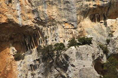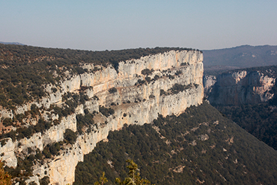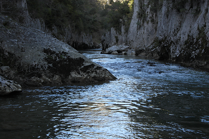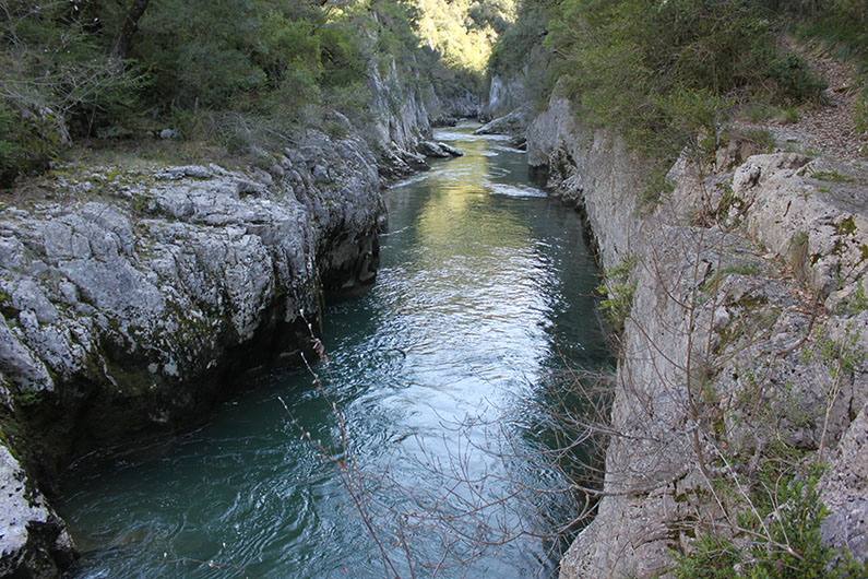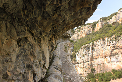 De forma similar a la entrada, el último tramo de recorrido por el interior de la foz lo hace canalizado entra las rocas anteriores. Salida de la foz, rio abajo, se encuentra la ermita de San Pedro en Usún.