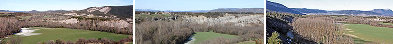 Desde Arangoiti observamos que el extremo SW del valle lo ocupan los territorios más bajos, integrados en la cuenca de Lumbier, donde sobresalen los terrenos eocénicos, relativamente jóvenes, formados en la era secundaria (el cretáceo) y en la era terciaria. Nos llama la atención la composición de carácter arcilloso del suelo en el que sobresalen afloramientos de margas blandas (tufarros) de formas suaves originadas por la erosión de la roca madre que las origina.