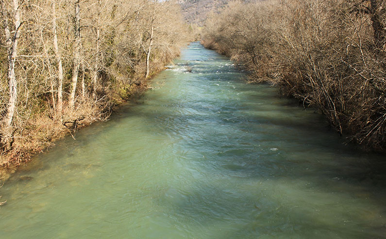 Seguimos el curso del río Salazar que se desplaza de N a S y de S a W de Romanzado. Proveniente del Almiradío de Navascués, penetra en el valle inmediatamente después de atravesar la Foz de Aspurz, bajo la Peña del Águila, entre los montes Idokorri y San Quirico.