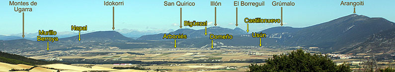 Divisamos cómo en Ugarra estos montes se prolongan con Idokorri y la Sierra de Illón (San Quirico, Illón y El Borreguil) que se extiende por el N del valle y de Castillonuevo hasta el límite con Aragón en el extremo NE del término de este municipio, próximo al río Esca en la Foz de Burgui.