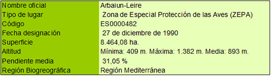 Ocupando gran parte del territorio de las zonas central y occidental del valle se encuentramos la ZEC y la ZEPA Sierra de Leire, Foz de Arbaiun. El Lugar incluye terrenos de los términos municipales de Castillonuevo, Liédena, Lumbier, Romanzado, Yesa y los Faceros 11 y 15.