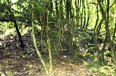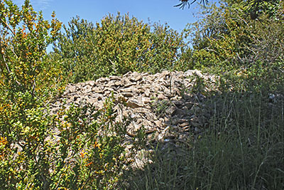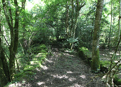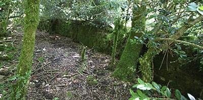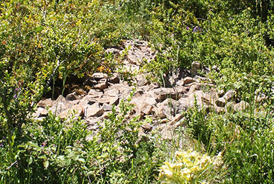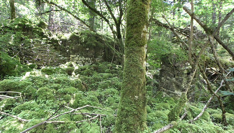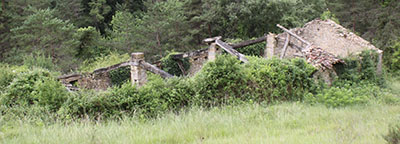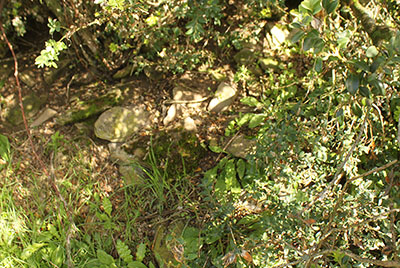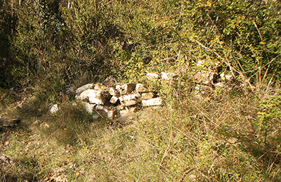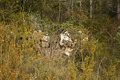 ![]() Los restos más evidentes del lugar son las ruinas de la borda de Marterena. Las ruinas conservan la parte baja de los muros que dibujan una planta rectangular de pequeñas dimensiones. La impenetrable maleza de la vegetación que la invade impide cualquier prospección de las mismas.