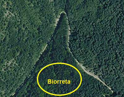 Se ubicaba en el fondo del barranco de su nombre, al NE de Zunzarren, hoy en el interior de un pinar de repoblación. La pista actual, abierta en los años setenta del siglo pasado, procede de Zunzarren y asciende a Espotz (Arce) en lo alto del cordal de la Sierra de Labia. En Biorreta gira 180º (S-N-S) y, a poco más de cien metros, cruza el despoblado, dejando las ruinas del despoblado por debajo de ella. Pertenece al Patrimonio Forestal de Navarra: 178 Ha, repobladas con pino laricio.