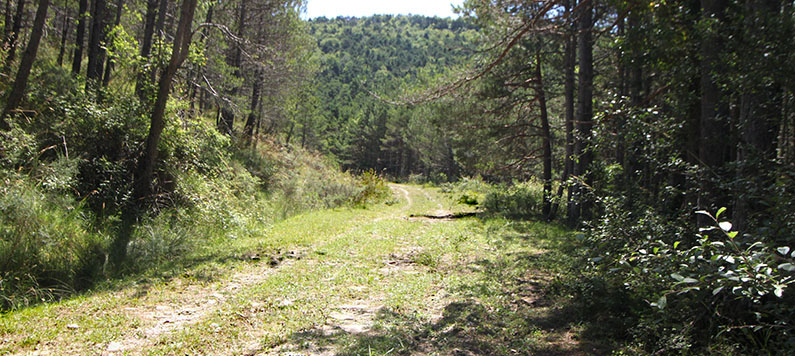 Aspuroz. El camino corta la vegetación y deja ver el suelo pedregoso.