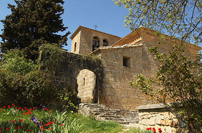 Unas ruinas envueltas en la vegetación, ubicadas al S del talud, y un desolado edificio al E son los restos que se aprecian. Las ruinas parecen corresponder a la ermita de Santiago, que fue iglesia del despoblado y que sobrevivió al mismo. Un detalle interesante es que, pegado a la pista, se aprecia un un tramo de cimentación de muro que bien pudo corresponder a esta iglesia.