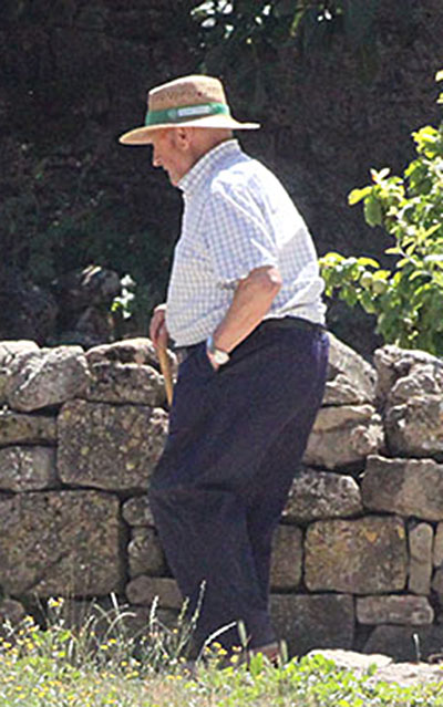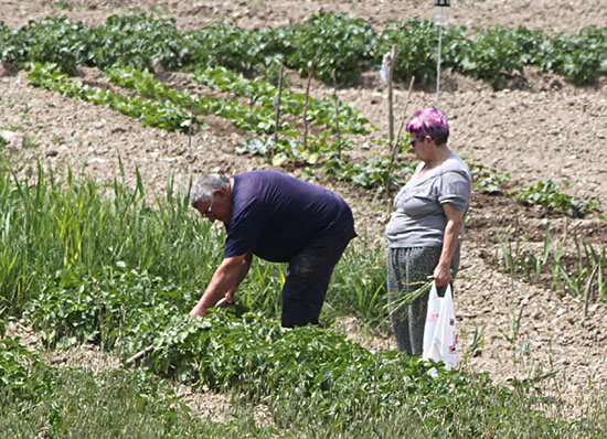 Urroz-Villa. Laborando en la huerta. De ahí que en estos municipios, además del ir y venir de tractores y maquinaria agrícola, sea común en el paisaje humano la presencia de personas mayores ocupando su tiempo en tareas domésticas, en pequeños cultivos de los huertos, paseando por las calles y caminos o simplemente conversando con vecinos. Pero también se oyen, especialmente en Urroz-Villa, voces de los niños que acuden a la escuela o juguetean en el frontón o por las calles del pueblo.