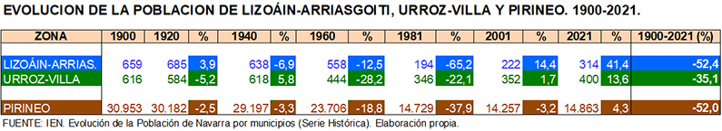 La población de Lizoáin-Arriasgoiti y de Urroz -Villa. Todo este proceso de transformación social en Urroz-Villa y en Lizoáin-Arriasgoiti desde la segunda mitad del S. XX queda reflejado en el paisaje humano que exponen los principales indicadores de población en ambos municipios y que denotan algunas similitudes y varias diferencias entre ambos.