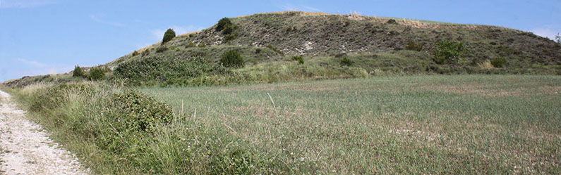 Sus restos se ubican sobre un talud baldío que se desprende hacia el S desde un campo de cultivo de cereales situado en lo alto de la terraza oriental del río Erro. Una pista agrícola pasa al SW del talud, pegada al mismo. |