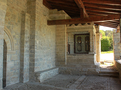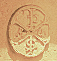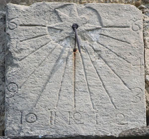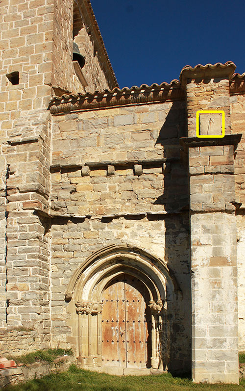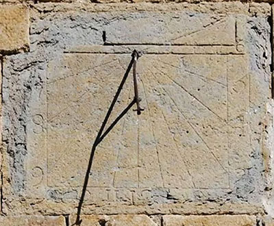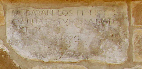 Bajo la ventana derecha por encima del arco, una piedra tiene una inscripción que dice: