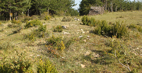 Explanada en el Altico de Amokain. Bajo el pino se encuentra el dolmen de Intxaurketa