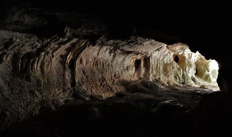 Fue en este espacio donde se encontraron fragmentos cerámicos de vasijas manufacturadas y un percutor de cuarcita que atestiguan que en él hubo en la antigüedad  un lugar de habitación establecido por el hombre.