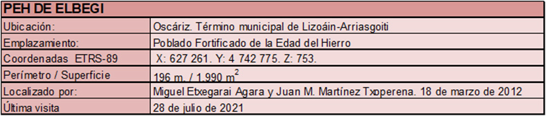 El PEH de Elbegi se encuentra en término de Oscáriz. El acceso podemos hacerlo desde Oscáriz por el viejo camino de Nagore, o desde Zalba por el camino de Ekieta, más corto. Ambos caminos confluyen en el Collado de Elbegi, del que accedemos al PEH.