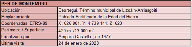 A estos PEHs hay que añadir el de Montemuru en Beortegui, catalogado y estudiado por Amparo Castiella en 1977.