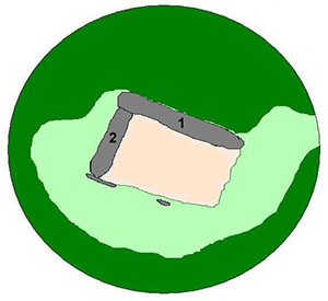 Dolmen de Oianburu. Elevación del túmulo por el SE.