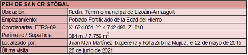 Accedemos a este asentamiento por el Camino de Estremal que asciende desde Redín hacia el N. Recorridos 1,5 Km. por este camino alcanzamos el collado de San Cristobal, al E del cual, sobre una ligera cumbre, se hallan los restos del PEH de San Cristóbal