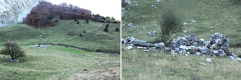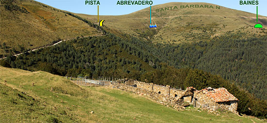 En el pastizal de esta llanada observamos los elementos propios de la ganadería tradicional de estos pueblos: ganado vacuno y caballar, bordas antiguas en uso o en ruinas, un edificio a modo de refugio construido sobre la planta de una antigua borda y dos balsas de agua, una seca en verano y otra con una singular fuente construida sobre un pontón de tierra que atraviesa la balsa dividiéndola en dos. Hasta la segunda mitad del S. XX esta planicie y su entorno eran campos de cultivo de cereales, patatas y hierbas.