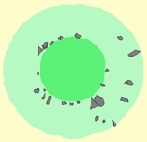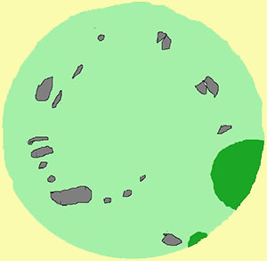 En el centro se adivina un ligero cráter en el que se observan piedras y