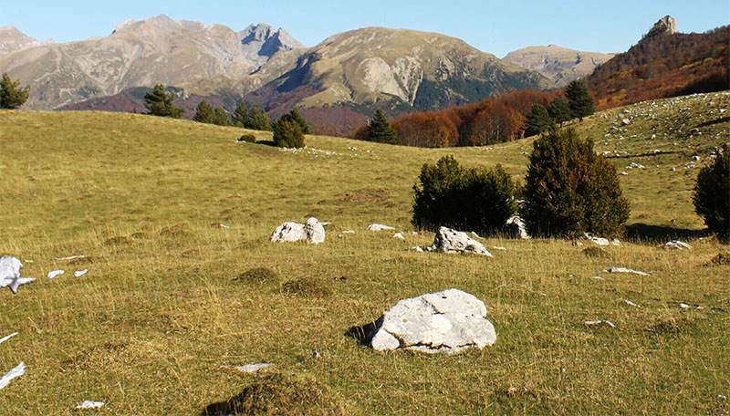 Entre otras opciones, el recorrido que hicimos para visitar estos megalitos discurre en su parte más baja por los extensos pinares y, en menor medida, robledales y hayedo, del extenso paraje de Txitxarena, hasta llegar a los pastizales de Santa Bárbara y por estos hasta la parte más alta en el entrono de la cumbre de Kakueta. Como es de esperar este paisaje se completa con el abundante ganado ovino, vacuno y caballar de los pueblos circunvecinos del Valle de Roncal.