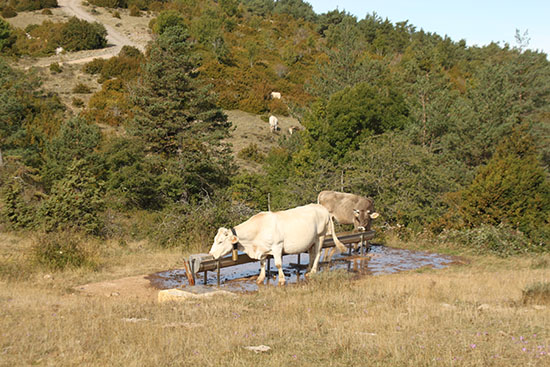 Abrevadero y ganado en el collado de Larra.