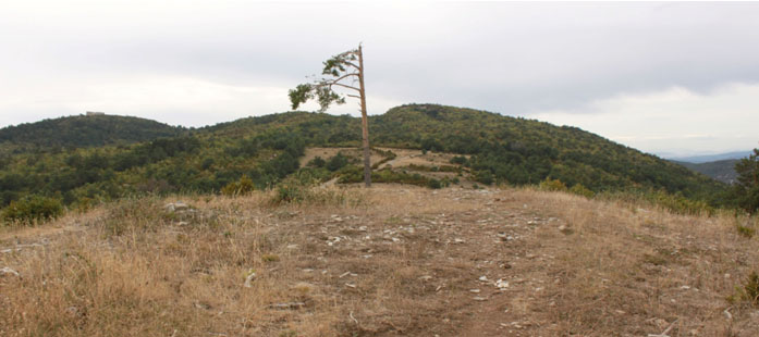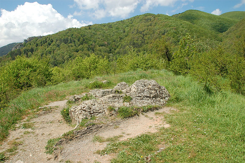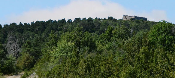 Es un recinto que corona el promontorio en el que se asienta, cubierto en su mayor parte por el bosque de pinos y de hayas del entorno.