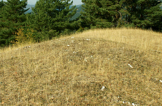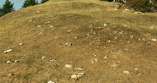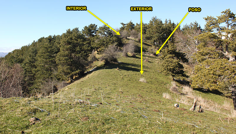 collado y dos fosos paralelos bajo la meseta sobre la que se asentaba