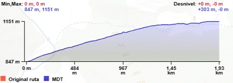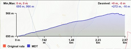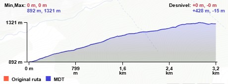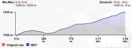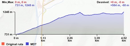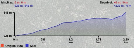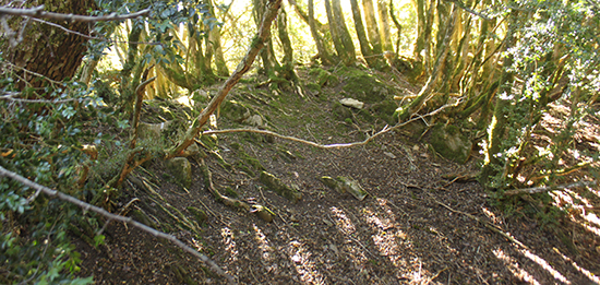 NW y que en un trayecto de 1,3 Km. nos sube hasta lo alto del cordal en un