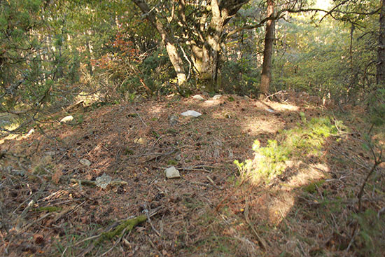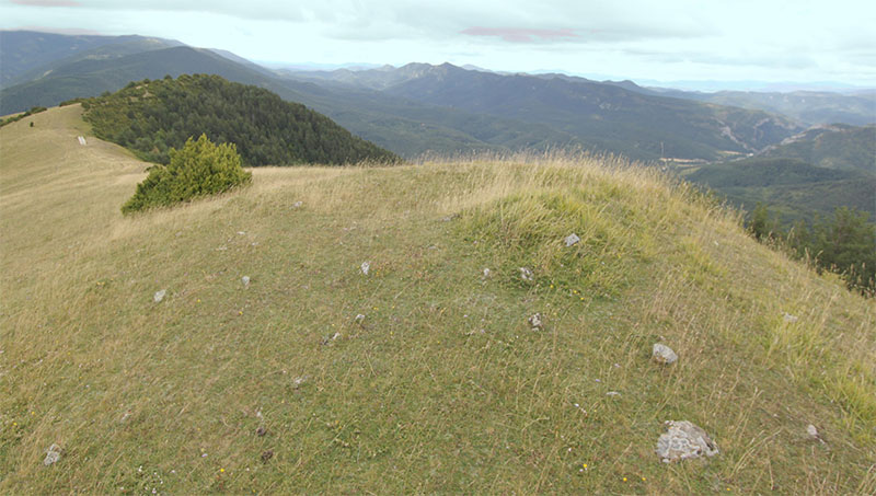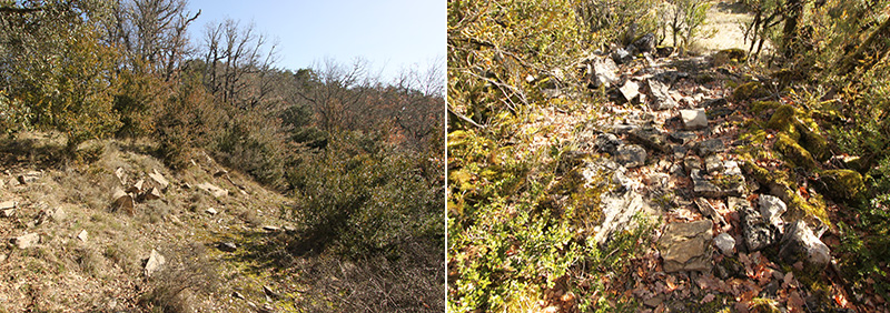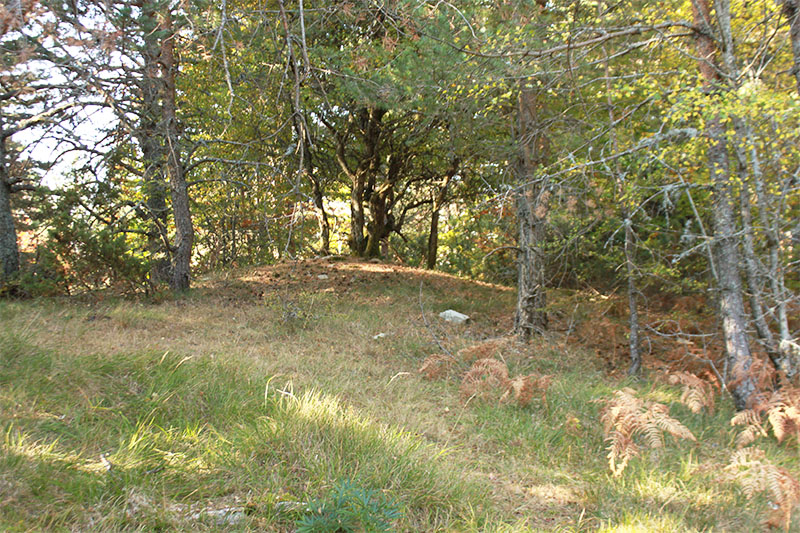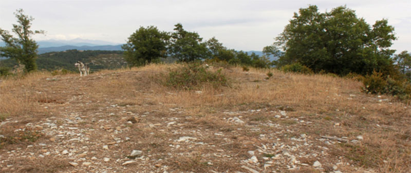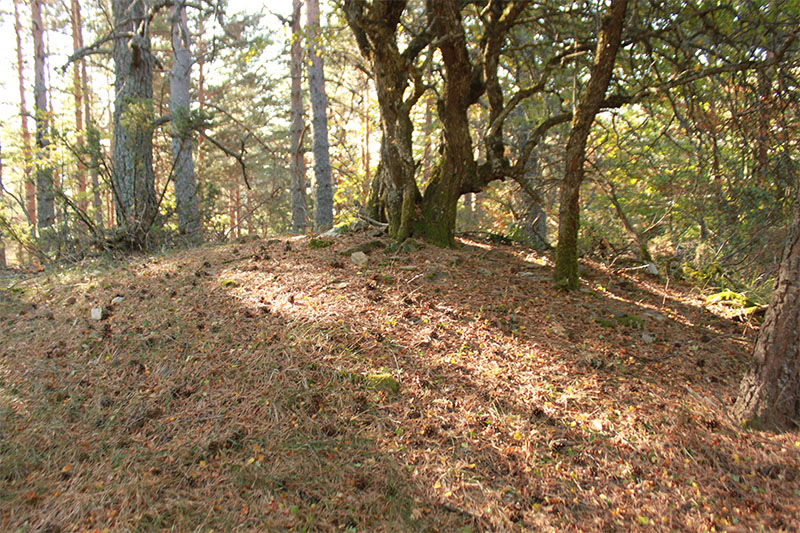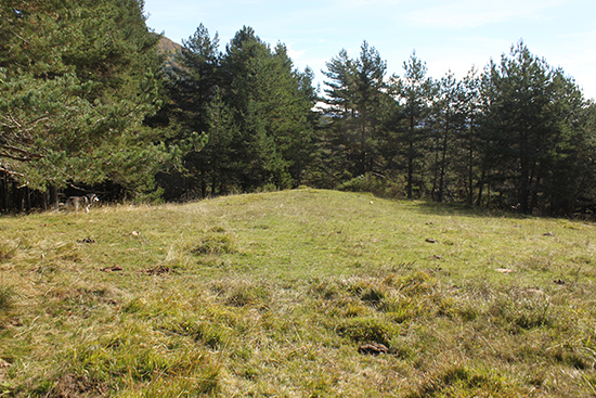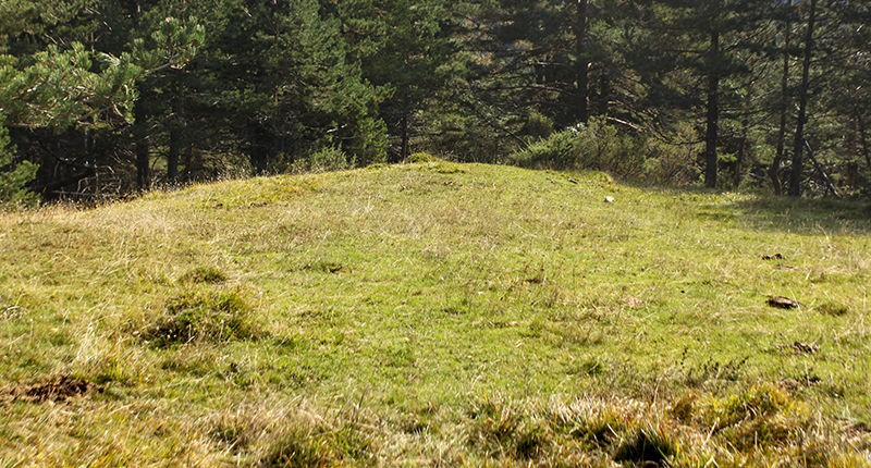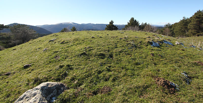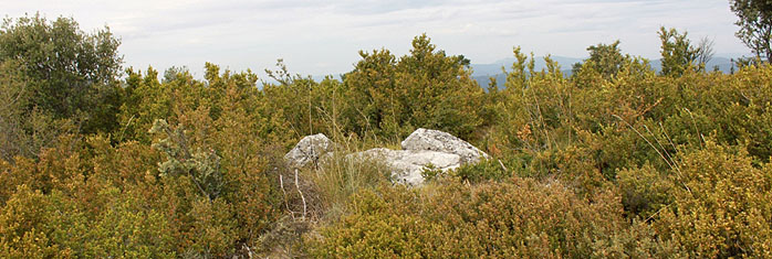 La limpieza del cortafuego ha permitido contemplarlo en su totalidad. Pero los brotes de boj ya empiezan a cubrir parte del túmulo. Si esta limpieza no se realiza periódicamente, terminará por ocultarlo como lo estaba anteriormente.