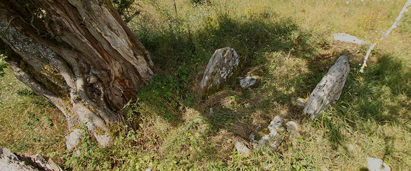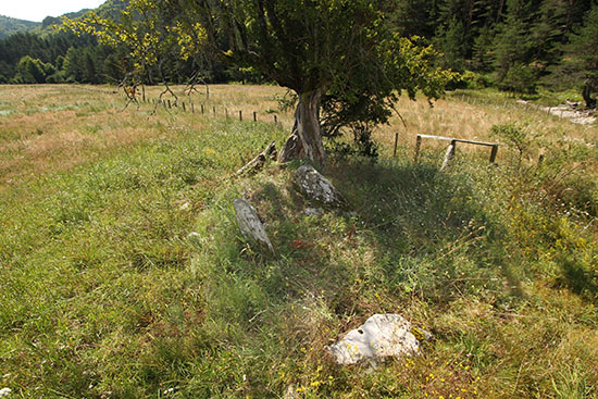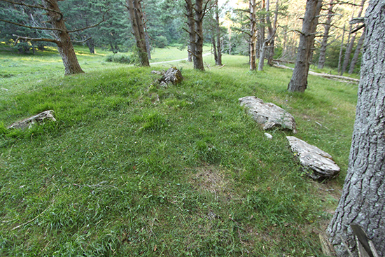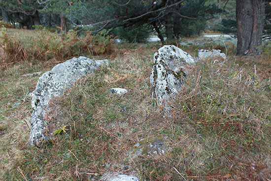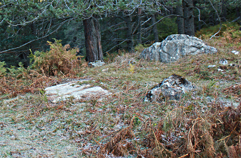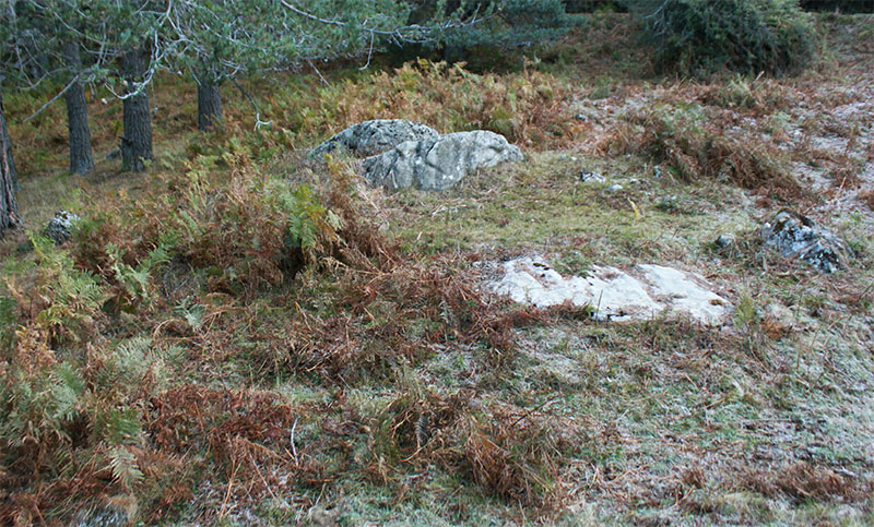 En general, llaman la atención los muchos restos de la deforestación. Troncos y ramas secos del lugar abundan sobre el túmulo. No obstante, algunos pinos silvestres fueron liberados de la deforestación y quedan como testigos y guardianes del dolmen