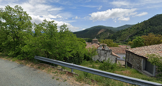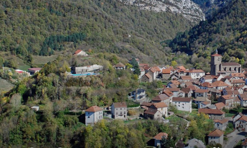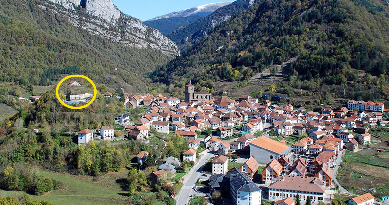 Isaba. Vista de la parte alta del poblado con la ubicación del castillo y del posible PEH sobre el promontorio de la izquierda.