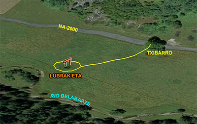 El acceso lo hacemos por un camino senda que parte del Km. 39 de la carretera NA-137 (Isaba -Francia), en las inmediaciones del camping de Asolace. Este camino es el mismo que el de acceso a los megalitos de Adazidoia, hasta la Borda de Cuartillo.