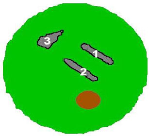 E un foso de N a S,girando al W en el extremo meridional, que