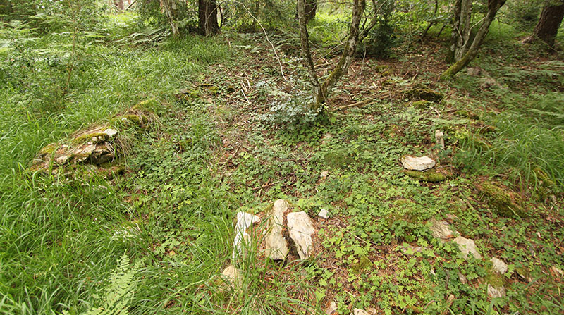 El interior del recinto estaba cubierto de pinos, helechos y hierba, ofreciendo un paisaje excpcional. Hay día ya no existe porque en el año 2021-22 se ejecutó una explotación maderera que deforestó este espacio,