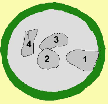 pequeñas partes de alguna losa, pero sin forma ni organización alguna.