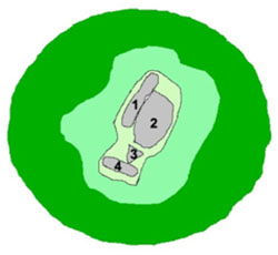 parcialmente desprovista de bosque. La entrada estaba al SE, protegida con doble foso amurallado. En el primero de ellos se observan los restos de una muralla oculta por la estructura del foso.