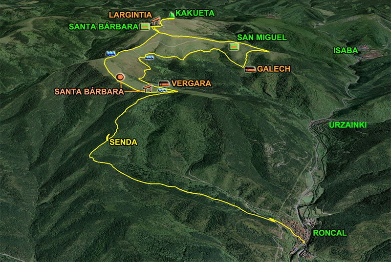 Iniciamos este recorrido a Santa Bárbara en el pueblo de Roncal. Tomamos