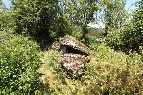 El terreno ha sido deforestado para la apertura del contafuegos de la que quedan abundantes restos en el lugar.. Esta operación de limpieza permitió que el dolmen saliera a la vista ya que el matorral, especialmente bojes, y el bosque que lo cubrían, imposibilitaban su visibilidad. Valdepeña por el NE.