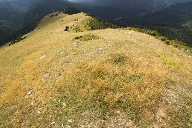 En las proximidades de la cumbre afloran espacios rocosos con cobertura de bojeral. Conforme desciende al NE el terreno se vuelve menos escarpado y aparecen los pastizales, donde la Plana de Sasi es su mayor exponente por el aprovechamiento ganadero que tradicionalmente se ha hecho de este espacio. Vemos una concentración de antiguas bordas en el lugar y cabezas de ganado vacuno durante gran parte del año
