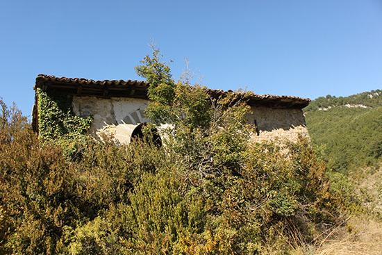 Uscarrés. Canales. Vegetación que cubre las ruinas de la borda.