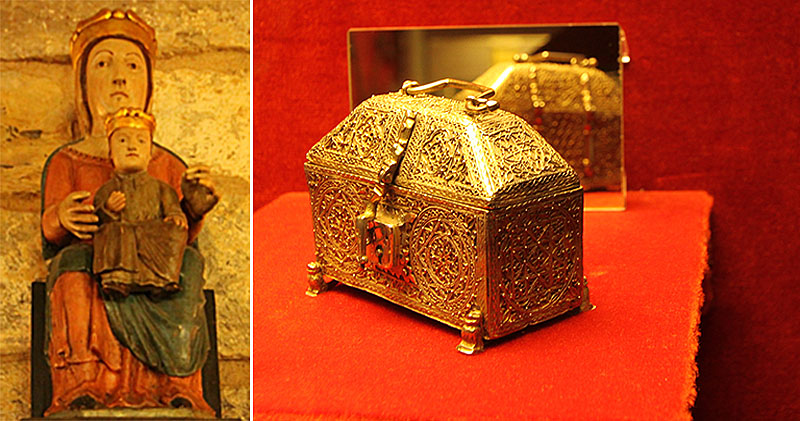 En la escultura, la estatua de una figura femenina sedente (la Virgen), gótica del siglo XIV. En orfebrería, una arqueta de plata dorada, cubierta de fina labor de filigrana y fechada entre 1274 y 1328
