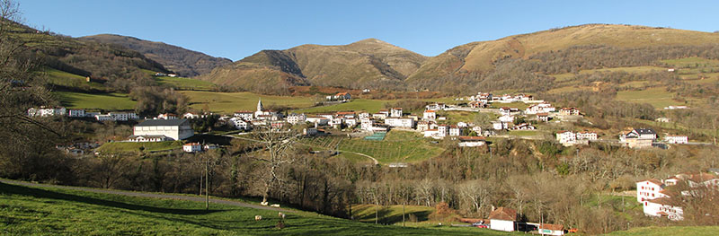 Pekotxeta. Núcleo al N de la carretera Por otro lado está la zona de los caseríos. Es un espacio elevado en la ladera oriental del monte Mataria, cuya cumbre está en territorio francés. A esta zona se accede desde Pekotxeta por carreteras locales que emanan de la carretera NA-135.
