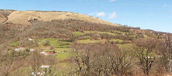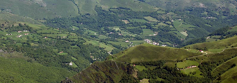 Luzaide/Valcarlos. La Calzada Romana desciende de Ibañeta hacia el poblado.