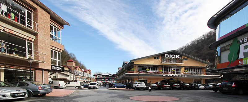 Este barrio se compone de tres zonas. Por un lado, está la zona habitacional y comercial, situada en el fondo del valle, en el entorno de la carretera junto al río Luzaide.